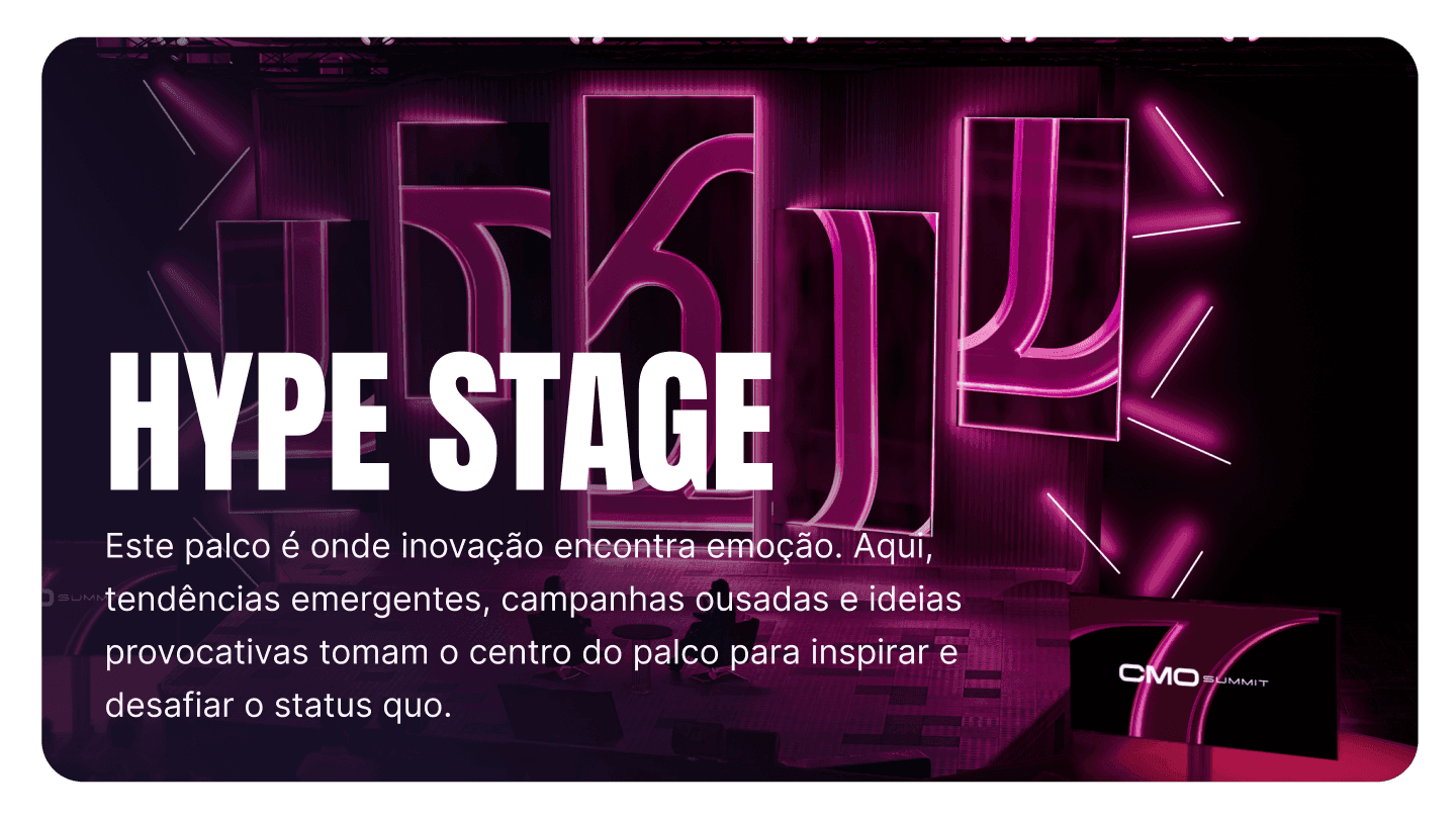 Acesso integral ao conteúdo do CMO Stage, Sales Stage e Hype Stage.Acesso integral ao conteúdo do CMO Stage, Sales Stage e Hype Stage.